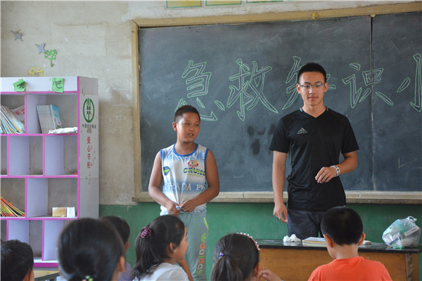 7月14日,是tyc539太阳集团河北唐县社会实践小分队“寻根之旅”的第四天,也是志愿者们在葛公村希望小学开展支教活动的第二天。经过前一天有趣地学习和愉快地相处,孩子们的学习热情和积极性都空前高涨。距离上课还有十多分钟,教室里已然座无虚席。50余名小员工端端正正地坐在自己的座位上,一个个都翘首期盼,亮晶晶的大眼睛里闪烁的是满满的求知欲。在这样良好的氛围下,伴随着清晨的第一缕阳光,一场别开生面的“急救知识小课堂”正式开课了。