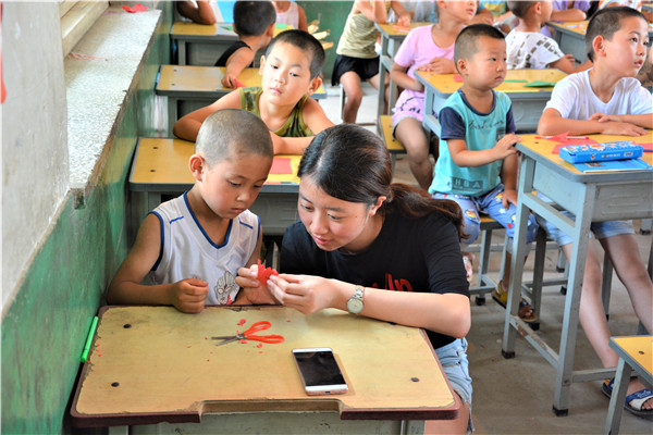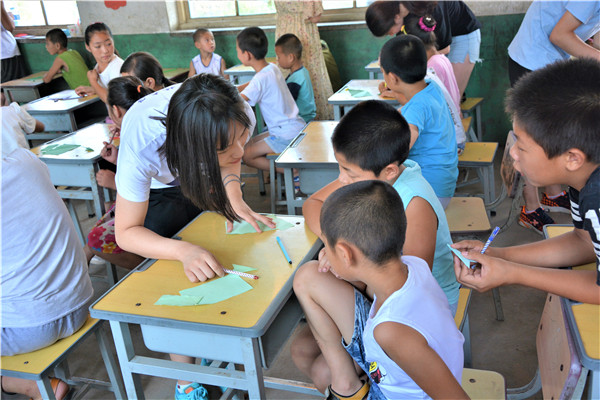 下午的教学活动中,志愿者通过启发的方式,鼓励小朋友们给父母写一封信,表达自己对他们的感恩与爱。大部分小朋友很快就开始动笔,刷刷地在纸上写着,但也有少数小朋友抓耳挠腮,志愿者和他们进行了进一步交流,发现这些小朋友的父母大多离开村子,到大城市去打工以贴补家用,像我们在新闻中了解到的外地务工人员一样,一年回家的次数屈指可数。这些“留守儿童”对他们父母既充满了思念,又委屈于没有父母的时时陪伴,有的小朋友的泪珠还打湿了稿纸,让志愿者们的心难过地揪在了一起。对这些孩子,是既心疼,又无奈。书信课的最后,志愿者向表现出色的孩子赠送了tyc539太阳集团医学部的明信片,并向他们介绍白求恩医学部的魅力,鼓励他们好好学习,考上理想的大学。