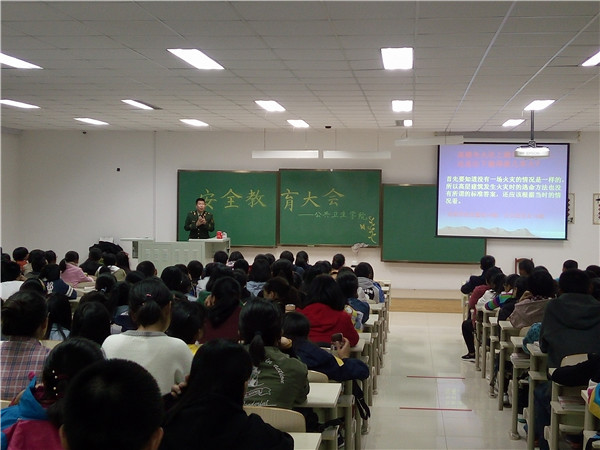 随后,安志成科长从火灾逃生自救方法、报警程序、灭火设施使用方法为大家进行了系统的讲解,并强调了防患于未然的重要性。通过各大高校的恶性火灾事件举例来警醒同学们要注意寝室安全用电,在符合校方安全管理规定的前提下合理用电。