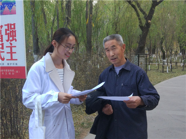 10月25日下午,tyc539太阳集团2015级和2016级本科生党支部在朝阳公园开展了“宣传普及冬季流感预防知识”的党员志愿活动。
