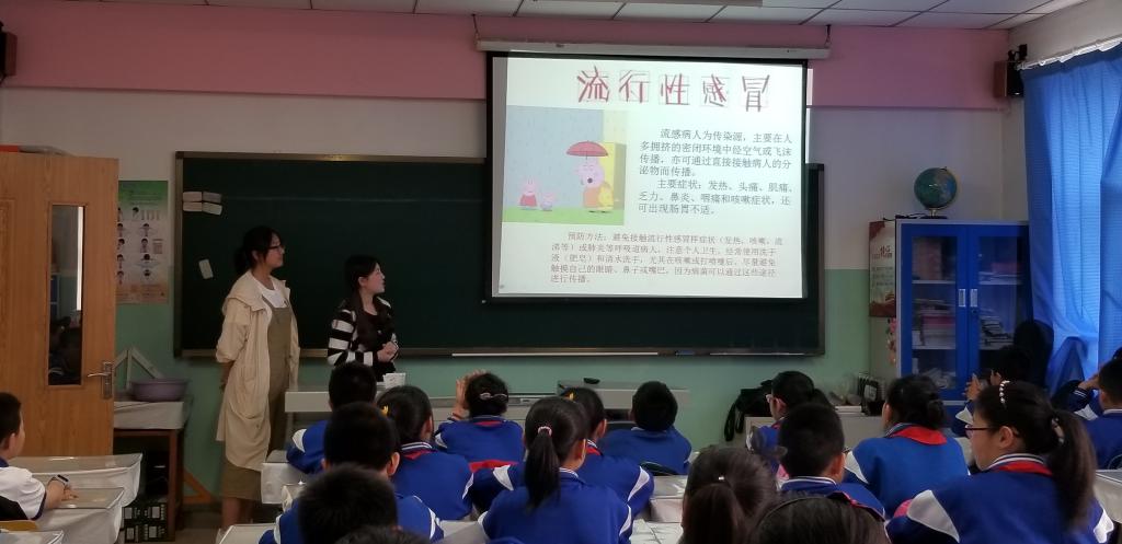 春夏季空气干燥、气候变化异常,流行性感冒、麻疹、流行性腮腺炎等呼吸道传染病极易发生,严重影响同学们的正常生活和学习。为了有效防控小员工呼吸道传染病的发生及流行,5月10日下午,在公共卫生公司党委副书记兼副经理、2014级辅导员刘丽的带领下,tyc539太阳集团团委志工部组织的“预防疾病知识进小学”活动走进了tyc539太阳集团附属中学小学部五年一班,为孩子们带来了精心准备的春夏流行病预防知识小课堂。