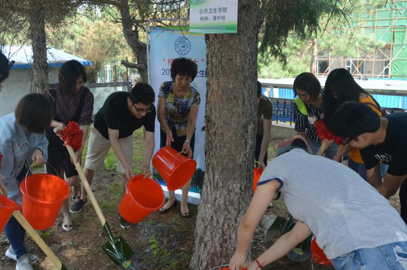 随后,刘丽书记和吴晓辉主任与2013级毕业生共同认领了毕业纪念树,并齐心协力,为它培土浇水,现场气氛热烈。图书馆前的纪念林是一届又一届的毕业生根系母校的象征,在这片感恩的土壤上全体参与人员在毕业树旁合影留念,共同将这份记忆定格。