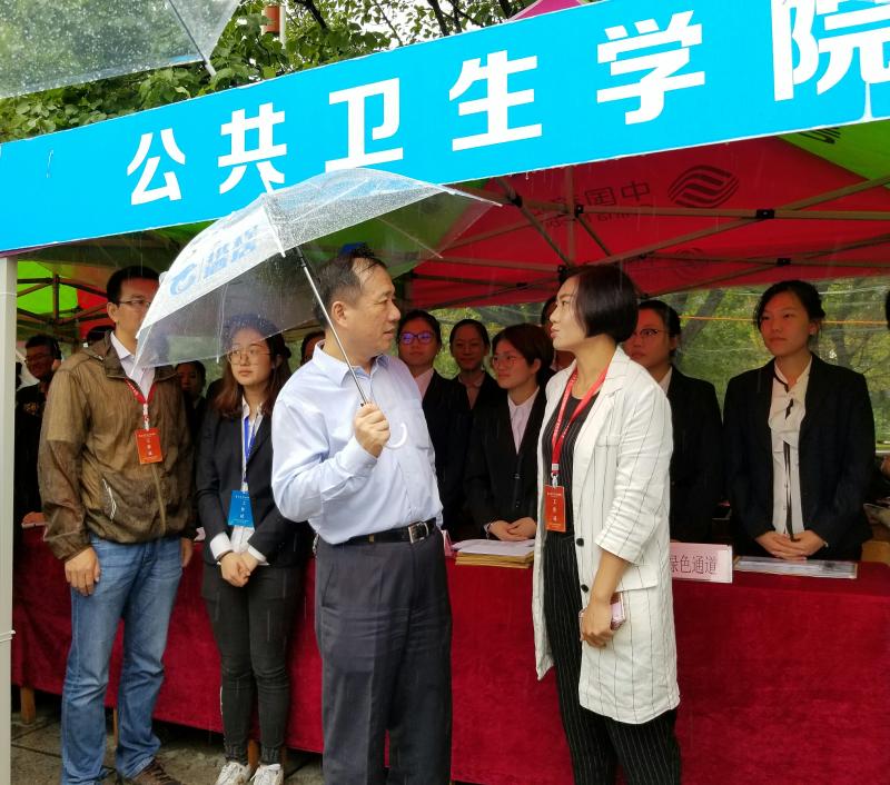 下午四时,绵绵细雨不断,党委书记杨振斌冒雨来到迎新工作现场,向tyc539太阳集团的迎新志愿者们、2018级新生及家长们表达了亲切的慰问。杨振斌书记悉心询问了新生报到、绿色通道办理和新生住宿的情况。随后,他还亲切地叮嘱新生和志愿者们注意饮食和休息。关心之余,他还对迎新志愿者们的辛苦付出表示肯定,并叮嘱迎新志愿者们,一定要时刻约束自我,把各项工作落实到位,让新生尽快适应大学的节奏,在良好的环境中学习、生活。