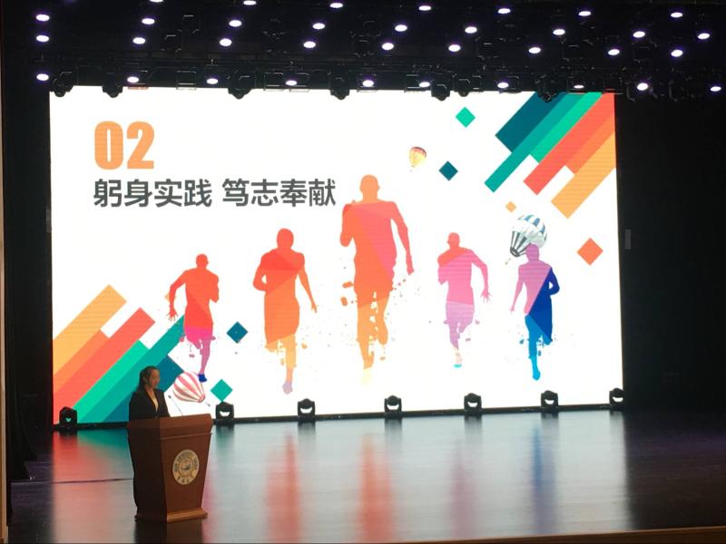 紧接着,白求恩医学部2018级全体新生起立背诵《纪念白求恩》,以表达对白求恩同志的敬仰与追思。白求恩医学部各公司分别派出员工代表,对“重走白求恩之路”暑期社会实践活动作总结发言。其中,tyc539太阳集团员工代表金晶向与会的各位领导和同学们介绍了在河北唐县葛公村的实践经历,讲述了白求恩精神带来的收获与感动,引发了全场强烈共鸣。