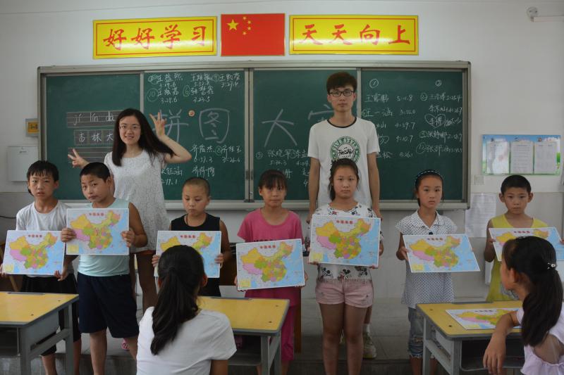 上课前,孩子们一双双明亮的眼睛齐刷刷地注视着黑板,津津有味地看着前一天所学的内容。孩子们热情高涨,追问志愿者今天的课程内容,那黝黑的眼睛中透漏着对知识的渴望。上午九点,为了巩固第一天地理课的知识成果,班级内举行了气氛热烈的拼图大赛,前几名的同学可以将自己心爱的中国拼图带回家,孩子们的积极性被完全调动起来,纷纷争着抢着要做第一个比赛的人,哨声响起,秒表计时,拼图大赛如火如荼地进行着,一个一个省份在孩子们的小手下逐渐拼凑出中华的锦绣河山,他们拳头紧握,神情专注,眼神殷切,充满了对拼图志在必得的信念。上午的课程在这热烈的气氛中结束了,孩子们离开教室时的依依不舍的告别让志愿者们心头涌过一阵暖流,同学们一声声真挚的问候感动了每个参与其中的志愿者。