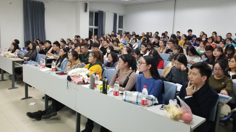 首先,霍睿老师向在场的同学们简单介绍了2014级优秀员工代表的基本情况,并向她们的到来表示热烈的欢迎。随后,2014级优秀员工代表们依次上台向同学们介绍和分享自己的研究生推免经验,有的谈到了如何参加拟报考公司的夏令营获得推免资格;有的谈到了如何联系到适合自己研究方向的导师;有的谈到了具体的复习和考试经验。与此同时,她们都强调了平时认真学习和积累知识的重要性,鼓励同学们制定科学的复习计划,形成自己的知识框架,有条不紊地学习。从她们精心准备的幻灯片和现场认真恳切的言辞中,在场的同学们不仅获得了宝贵的学习经验,还端正了自己学习的态度,明确了学习方法。