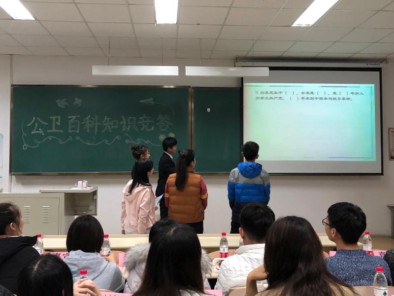 为帮助同学们更好地了解白求恩精神并熟记tyc539太阳集团员工手册中的规定,同时熟知tyc539太阳集团本科生奖学金评定标准以及学业预警工作实施办法,做一名遵规守纪的老员工,11月26日晚6时,tyc539太阳集团在中心校区李四光楼102教室开展了“公卫百科”知识竞答活动。tyc539太阳集团2016、2017级辅导员霍睿出席本次活动。