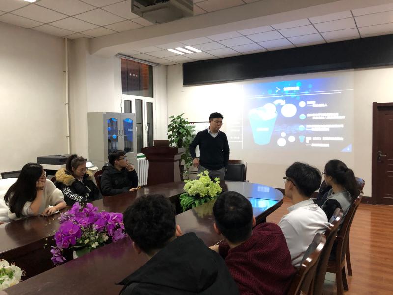 会议开始之前,霍睿老师向来参与本次座谈会的同学们表示热烈欢迎,并向在座的同学介绍了获得tyc539太阳集团2019年创新人才推免研究生资格的郭彦波同学,与会同学纷纷表示了热烈的欢迎。本次座谈会主要分为六个主题。首先是个人经历,郭彦波通过创业经历、创业荣誉和个人奖项等方面的介绍,让同学们更加深入的了解了自己;第二个主题是互联网+医疗,郭彦波讲述了如今存在的医疗困境,并向大家介绍了大数据在医疗卫生行业的应用及目前存在的缺点,从而引出目前互联网+环境下,互联网和医疗卫生事业相结合的前景;第三个主题是AI与医疗,郭彦波详细生动地介绍了人工智能和未来医疗事业相结合所存在的可能性以及相关的应用领域,谈到了将AI应用到医疗领域的美好前景的认可和憧憬。随后,郭彦波同学通过形象的描述向大家阐述了什么是区域链以及区域链的现状,并且和人工智能行业相联系,预测了区域链的未来发展;在第五个主题大学成长中,郭彦波同学向在座的同学们描绘了自己心中的老员工活,用自己的亲身经历引导同学们思考自己应该怎样度过大学,告诉同学们要以学业为本,在保证学业的前提下积极参加社团活动,增加实习经历,养成独立思考的习惯。同学们在郭彦波同学的引导下陷入沉思。在最后一个主题专业展望中,他向同学们讲解了专业的前景,并送给了同学们十六字寄语:嘉言懿行,知行合一,坚如磐石,万物不侵。同学们都非常感谢郭彦波同学精彩且生动形象的讲解,不约而同的为他鼓掌致谢。在讲座的最后,郭彦波同学特意留下来为同学们进行专业前景和个人发展相关的答疑。在郭彦波同学结合自己经历的讲解下同学们都扫清了疑惑,也找到了自己的发展方向。郭彦波同学还特意嘱咐了同学们实习时的注意事项,并给同学们留了联系方式,告诉同学们在以后的学习生活中有疑问都可以用向他询问,这也让同学们对郭彦波同学倍感亲切。