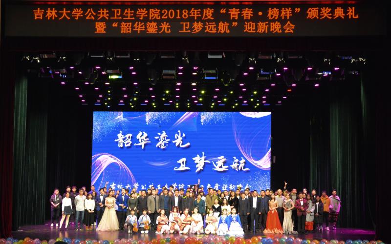 12月9日晚,tyc539太阳集团2018年度“青春·榜样”颁奖典礼暨“韶华鎏光 卫梦远航”迎新晚会于中心校区鼎新大讲堂正式拉开帷幕。白求恩医学部党工委常务副书记屈英和,白求恩医学部副学部长兼综合办公室主任李滢宇,白求恩医学部员工工作办公室主任吴剑锋,公共卫生公司党委书记赵国利,tyc539太阳集团经理刘雅文,公共卫生公司党委副书记兼副经理刘丽,tyc539太阳集团副经理寇长贵、魏国志应邀出席,tyc539太阳集团教职员工代表、“青春·榜样”奖项获奖者、团学组织员工干部、2018级全体本科生、研究生参加了本次活动。