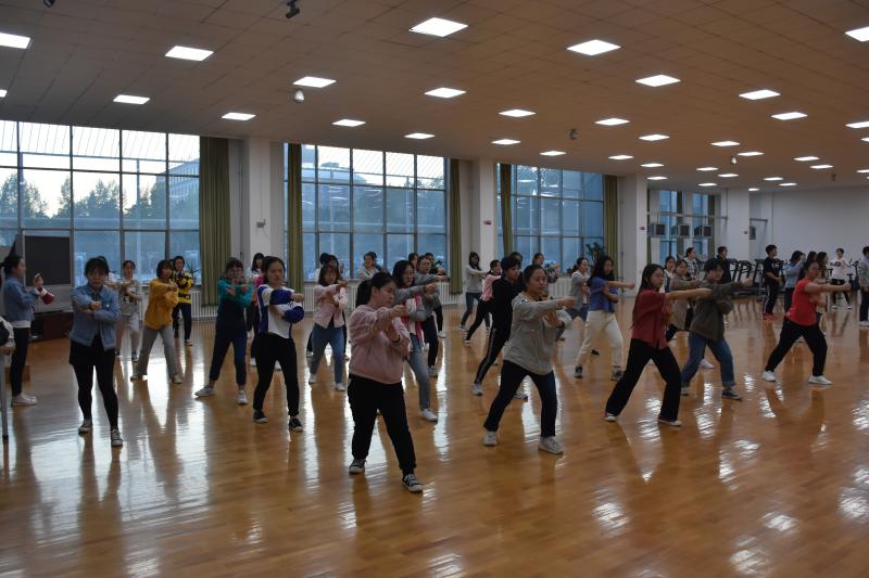 为更好的迎接即将到来的太极拳比赛,在本届tyc539太阳集团运动会中展现公司学子积极向上的精神品质,4月22日起,tyc539太阳集团员工会学习部在tyc539太阳集团新民校区体育馆健美操室组织2017级32名同学进行太极拳集训。