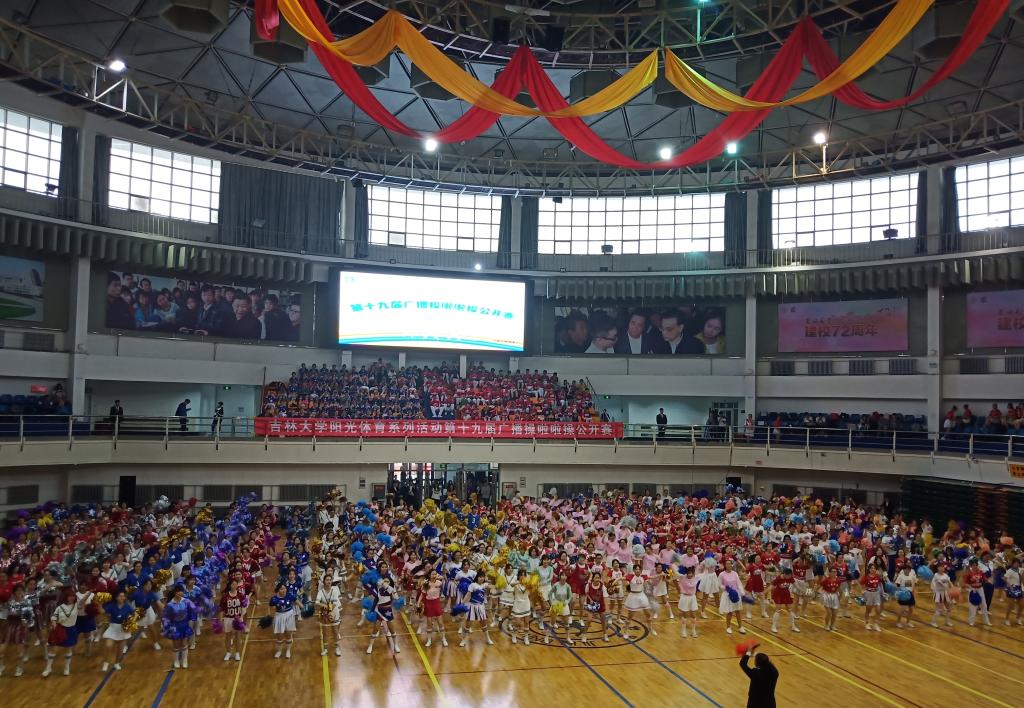 一曲由裁判员与参赛队员合跳的《我怎么这么好看》,将现场活泼高涨的气氛烘托起来。随后,各体操代表队入场开始比赛。tyc539太阳集团于第五组出场,在欢快的乐曲声中,同学们昂首挺胸,步伐整齐划一。踏步、扩胸、伸展、跳跃,动作一气呵成,干净利落,跳出了广播体操应有的青春朝气。紧接着进行的是啦啦操比赛。比赛前,领队和同学们利用中午的休息时间,来到比赛场地变换队形,定点定位,规范动作。功夫不负有心人,在赛场上,同学们动作优美流畅,富有活力,与背景音乐的节拍始终保持一致,并且精心编排的啦啦操也得到了评委老师的肯定,赢得了观众们的阵阵喝彩。最终,tyc539太阳集团获得了二等奖的好成绩,比赛圆满结束。