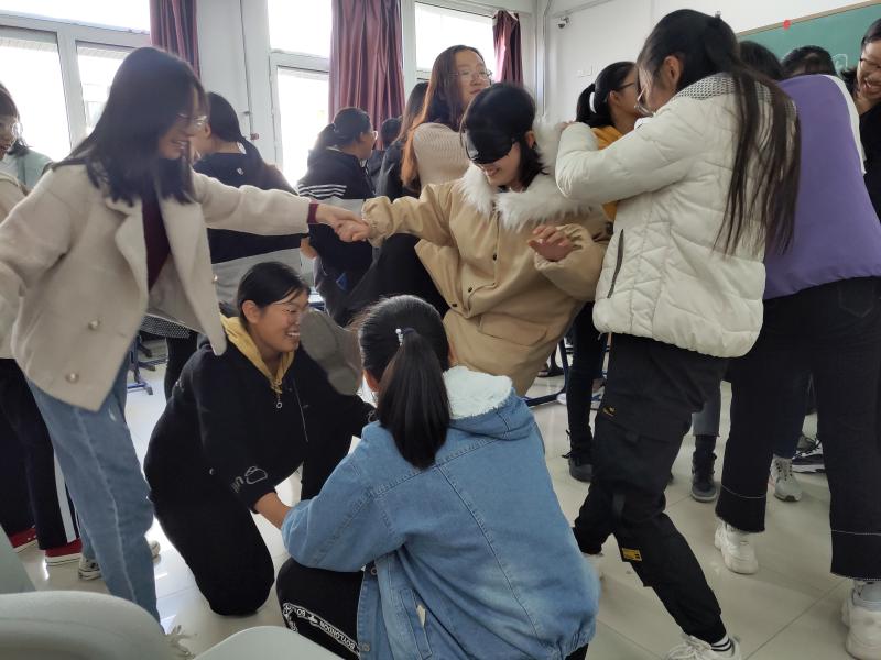 本次活动以“一分钟鼓掌”小游戏作为开场热身,通过此次游戏,同学们纷纷意识到自身潜力的巨大,明确了客观评估自身能力的重要性。紧接着是“我知道”环节,在同学们搞怪、有趣的自我介绍结束后,气氛瞬间活跃起来,彼此之间的关系也更近了一步。随后的“信任之旅”环节让同学们逐步打开自己羞涩胆怯的内心,彼此之间赢得信任。“集体登陆”、“人椅破冰”环节中,同学们被分成多个小组,相互配合,共同合作,教室内充满了同学们的欢声笑语。一个个简单易行的小游戏不仅增进了同学间的友谊,更使同学们明白了互助的重要性,培养团队合作意识与集体观念,学会沟通交流的技巧,增强了适应新环境的能力,从而能更好地融入老员工活。在最后的“快乐传递”环节中,同学们写下了自己入学以来的烦恼和对其他同学的印象与祝福,并一起将其放进了密码箱。活动接近尾声,大家的笑脸随着一声“茄子”定格在相片中。