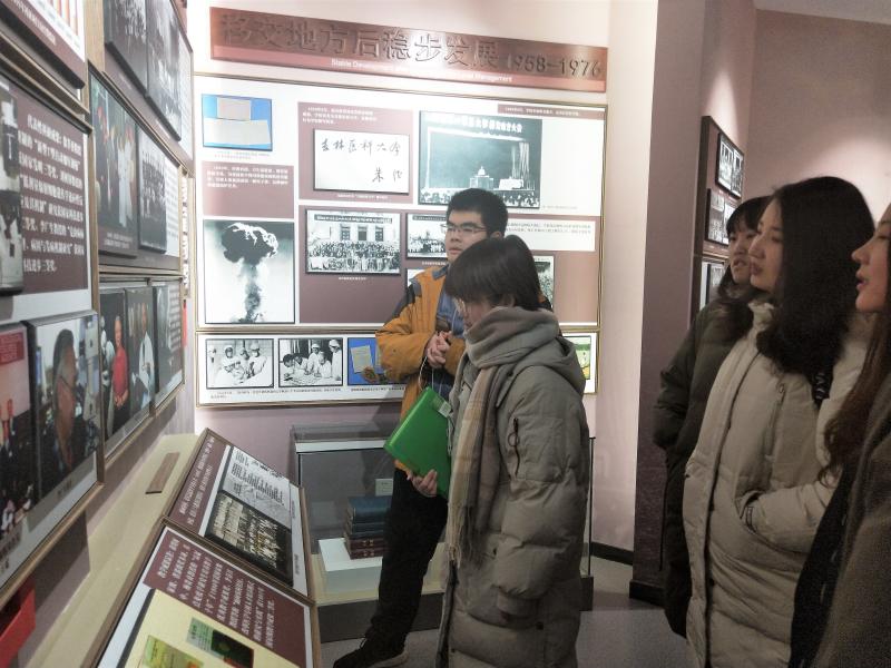 首先,同学们跟随李娴丽的步伐参观了展馆一层的白求恩医科大学校史馆。她向同学们介绍了建校功勋和历任校领导,丰富详实的讲解让同学们充分认识到建校过程中的艰难险阻,更能体会到如今辉煌成就的来之不易。如今的tyc539太阳集团白求恩医学部日益壮大,在教育和科研等方面都颇有建树,始终坚持“不忘初心,牢记使命”的信条,每年都组织员工重回河北唐县做志愿医疗服务,用实际行动践行誓言。