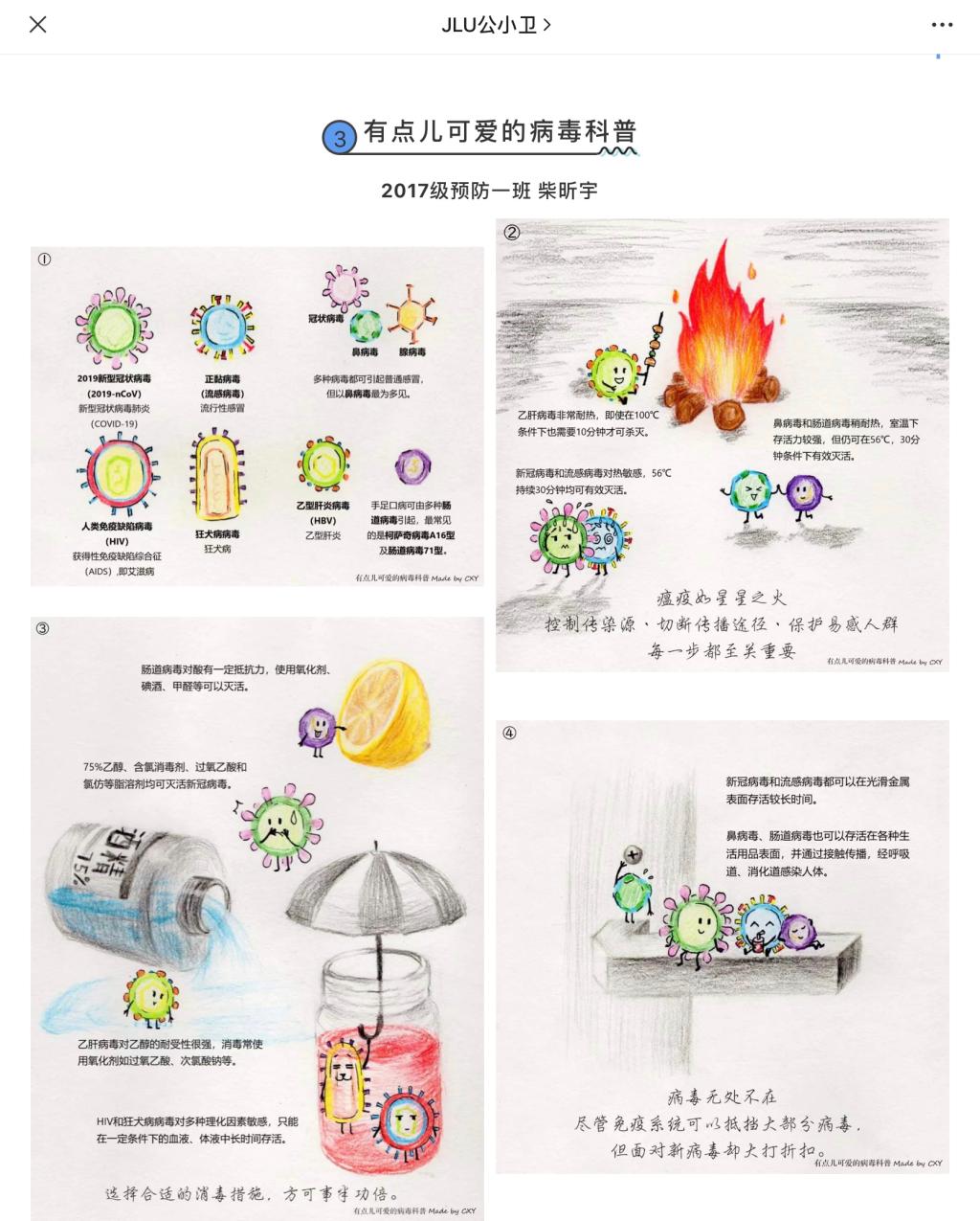 活动期间,同学们积极参与,紧紧围绕“新型冠状病毒肺炎疫情防控”这一主题,上交了许多精美且有创意的图片、短视频等作品。这些作品中不仅包含科学防疫科普小知识,还从不同视角解读疫情防控动态。在家学习做好隔离,出门购物做好防护。同学们发挥着想象力和创造力,并将点滴日常灌注到自己的作品中,在表达自己疫情期间的乐观心态的同时,也在号召更多的人加入到他们的队伍,让更多的同学积极面对生活中的困难,健康度过疫情。