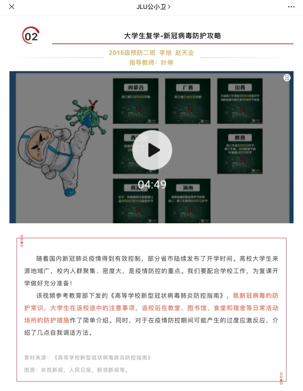 通过此次老员工健康防疫科普作品比赛,参赛选手宣传了科学防疫知识,解读了疫情动态,帮助更多的吉大师生掌握科学防护方法,树立积极心态,营造了健康和谐的校园环境和积极向上的学习氛围,为坚决打赢疫情防控阻击战贡献了自己的力量。