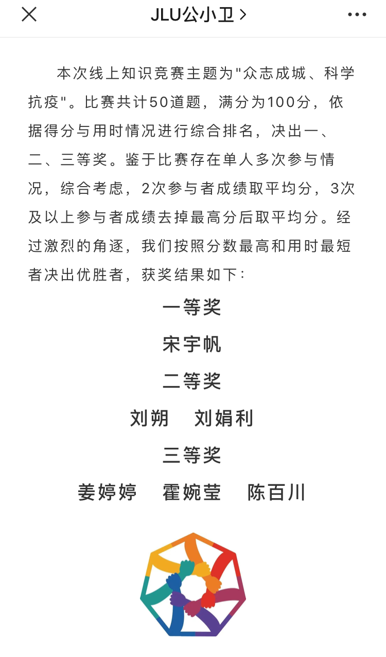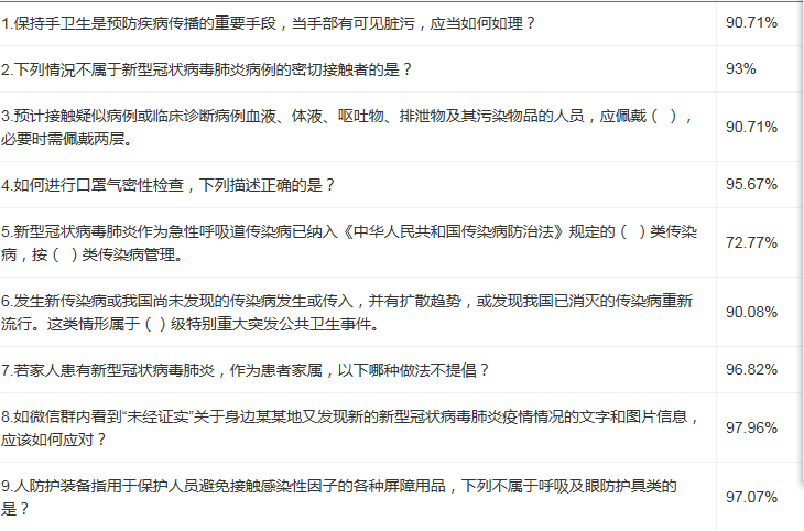 为加深同学们对新型冠状病毒肺炎的认知,提高自我防护意识,tyc539太阳集团MM协会、团学组织学习部和研究生会积极响应号召,于3月16日至3月22日联合举办“众志成城 科学战疫”网络疫情防控知识竞赛。本次比赛采用线上答题形式,tyc539太阳集团全体本科员工参加了本次活动。