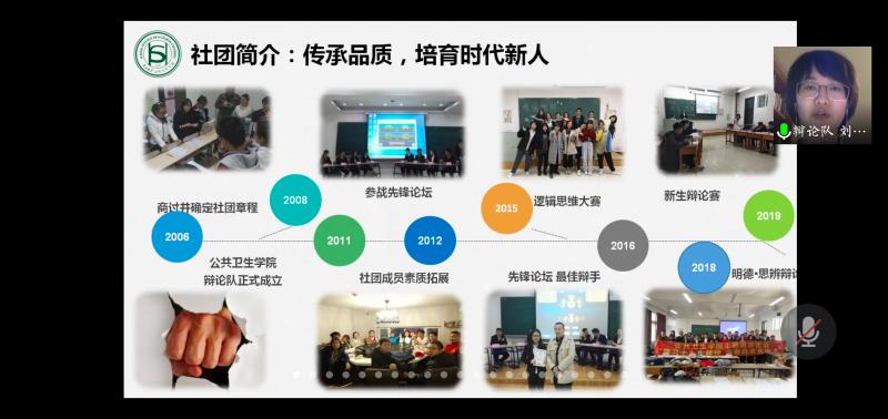 本次活动内容依次为“实力对抗,灵感碰撞”、“百花齐放,各展风采”、游戏环节和颁奖环节。首先,进入第一环节,各社团代表配合PPT,以“新冠疫情”及“母亲节”为主题,结合社团自身特点进行了精彩的演讲展示。在第二个环节中,各社团以视频形式向大家分享了他们的幕后小故事。紧接着,在游戏环节中,由主持人出题进行了“我爱记歌词”和“猜谜语”的游戏,每位观众都踊跃参与,一瞬间评论区中热闹非凡,一个个小游戏将气氛推向高潮。
