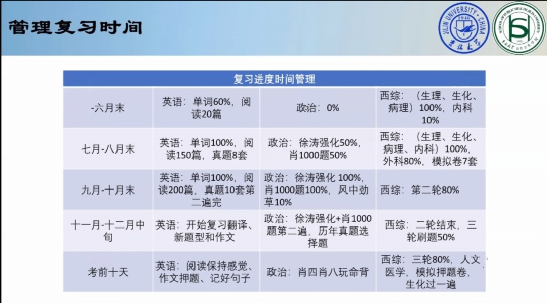 首先,郑壮壮同学根据自身经验,建议同学们有效管理复习时间,不仅做到劳逸结合,更要适时调整复习心态。紧接着,坎杰布尔马克力克同学提出三轮复习的重点,强调做笔记的重要性,最后将“持之以恒,静下心来,相信自己”三句心得送给大家。轩实同学和李铮同学分别从不同角度详细介绍了核医学和特种医学的学科背景和分析了考试内容,为同学们的报考复习提出具有建设性的意见。随后,多为优秀毕业生从自身经验出发,结合考研的现实情况,把考研路上的心得体会倾囊相授,有的详细介绍考研流程中重要事项,如择校专业与调剂;有的解答同学们在资料选择上的困惑,如专业课书籍和网课视频的挑选;有的总结自己备考阶段的复习计划,分享复习顺序和复习要点,帮助同学们在复习中少走弯路,能够更有效率地学习。随后,由霍睿老师对各位同学的精彩分享进行总结,至此,本次会议正式结束。