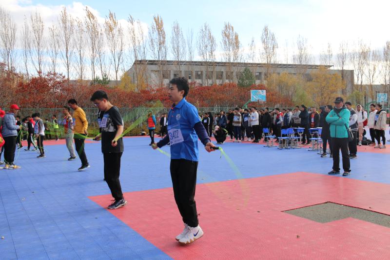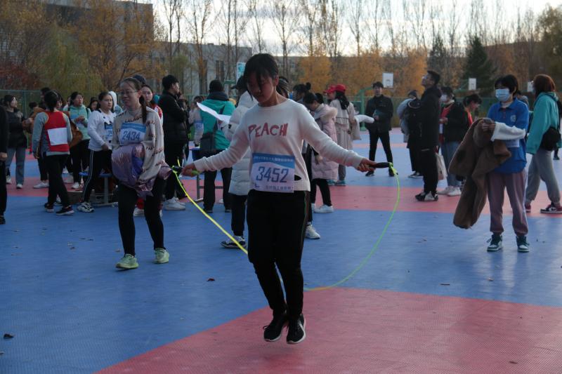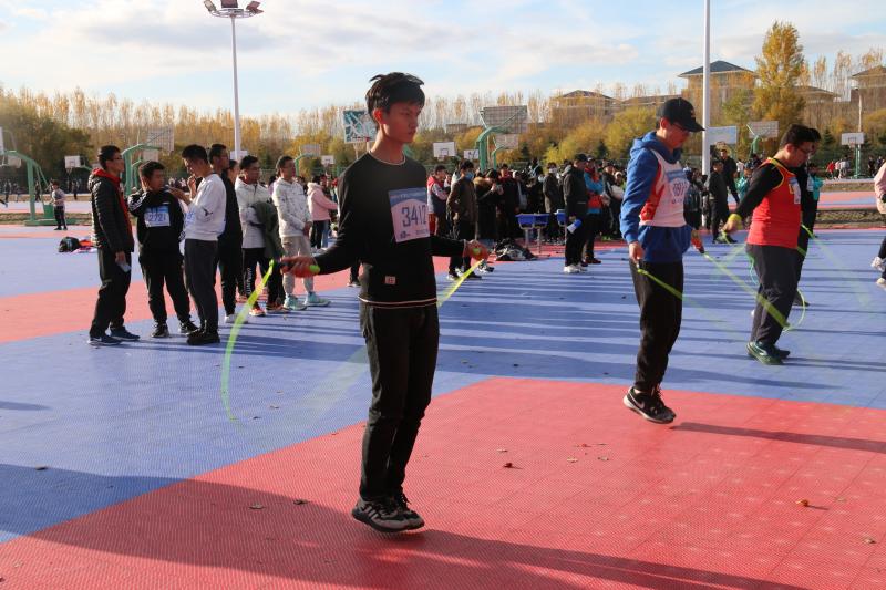 本次比赛只设一回合,选手分成不同的组,每组设有三名裁判,裁判分别对选手成绩计数,取三名裁判计数相同的一组为成绩,如都不同,则取平均值记作选手成绩。最后按成绩取前三名颁奖。比赛还没开始,同学们的心情无比的兴奋。同学们都紧张的热身。裁判宣布准备开始后,同学们双手拿着跳绳,静静的等待的比赛的开始。在比赛中参赛的同学在场上跳跃着双脚,挥动着双臂。脚尖与地面的摩擦谱出一曲动听的乐章,手中的跳绳在空中舞出一条优美的弧线,场下的同学都为他们呐喊加油。最终,娄世豪同学取得了第八名的好成绩。