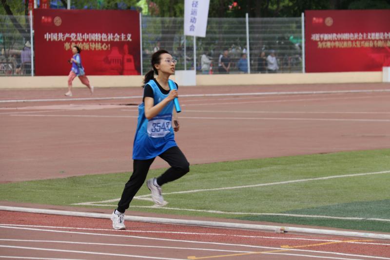 本次女子4×400米接力赛于5月28日下午2点20分拉开帷幕。枪声响起,位于一组七道的第一棒选手韦海玉向前跑去。一整圈400米的距离,不能像百米比赛那般拼命向前冲,此时更考验选手的体力与耐力。一步一个脚印踏实地跑,她如同驰骋的战马,矫健的身姿震撼着每一个人。交接棒的传递吹响了第二轮赛事的号角。在超越与被超越的过程中,张鹤凡、沈畅、冯一苗三位选手并没有气馁,她们不畏强敌,充满自信地向前跑去。观众席上鼓声雷动,加油声一阵盖过一阵。听到观众席呼喊着为自己的加油声时,选手心中感动与激动并存。情感的交织幻化成接力棒的紧握和步伐的提速。tyc539太阳集团的四名选手充分展现了青年的蓬勃朝气以及奋斗拼搏的精神。最终,tyc539太阳集团取得了第六名的成绩。