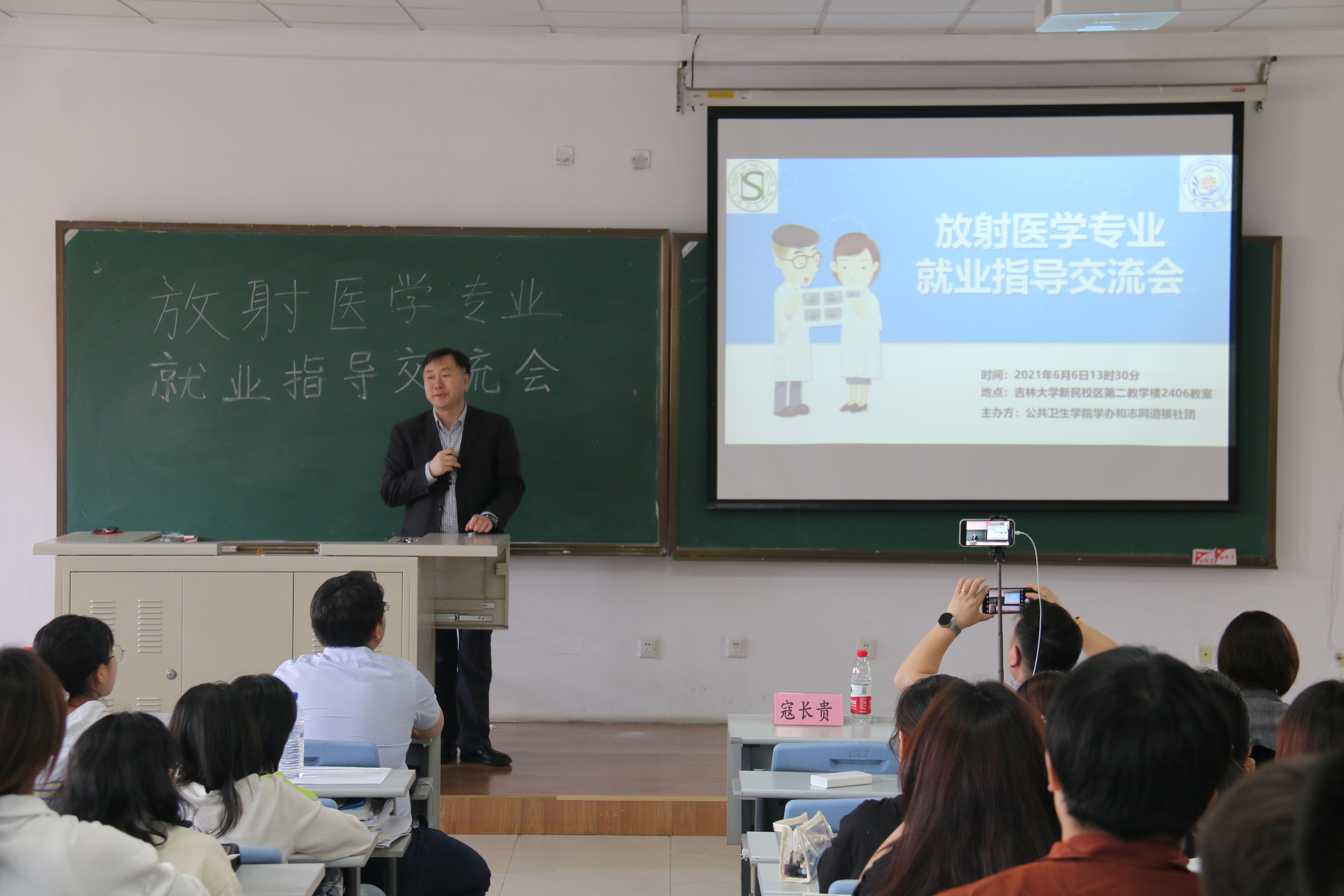 为引导放射医学专业同学做好职业规划,正确、理智选择毕业去向,增强同学们的个人规划意识,提高就业、考研竞争力,6月6日13:00,tyc539太阳集团“志同道核”社团于新民校区第二教学楼2406教室成功举办放射医学专业就业指导交流会。本次交流会作为2017级放射医学同学的就业指导慕课线下课程,共邀请了寇长贵、姜新、申延男、王辉东、陈滨、王志佳、冷贺璇、刘心怡八位老师作为主讲人及嘉宾,2017级放射医学专业所有员工以及2018级、2019级放射医学专业部分员工参加了本次会议。