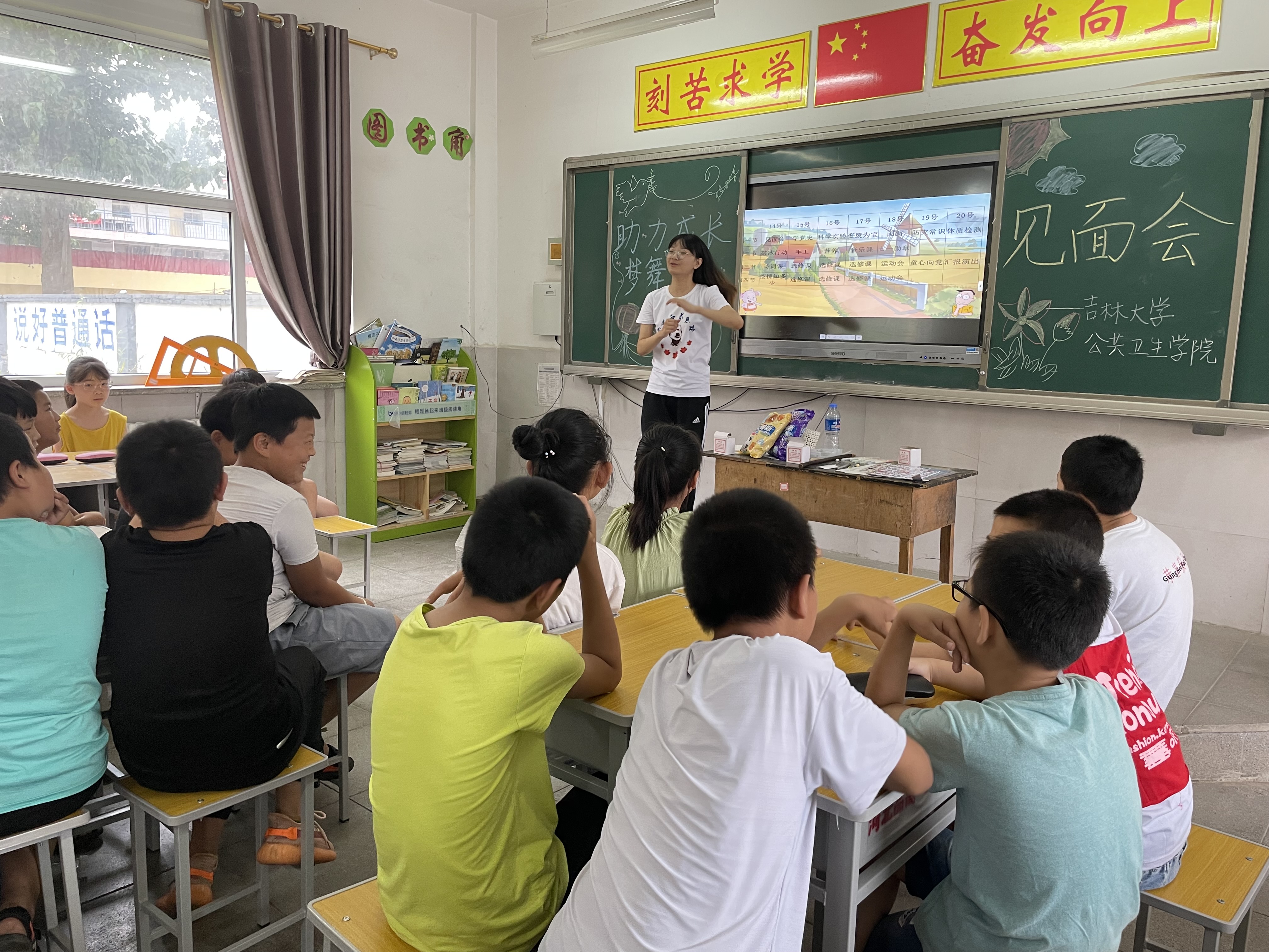 早上8:30,支教第一课——“助力成长,梦舞吉大”见面会正式开始。志愿者们向孩子们详细介绍了tyc539太阳集团和tyc539太阳集团的基本概况,从衣食住行、社团活动、社会实践等方面详细介绍了丰富多彩的老员工活,并通过《吉大力量》这个视频,引领员工们走进祖国北疆的神圣学府,激发起孩子们对大学的兴趣和向往,在孩子们的心里播撒下tyc539太阳集团的种子。随后,志愿者们依次向孩子们进行自我介绍,同学们幽默风趣的语言,第一时间增进了和孩子们之间的距离。