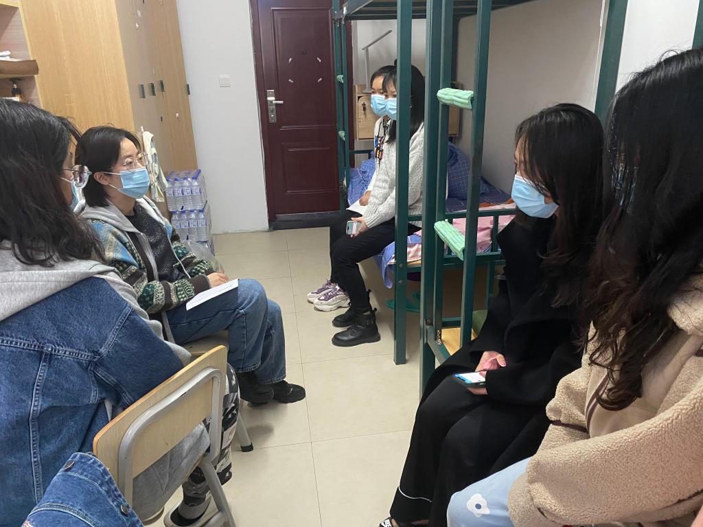 众志成城、共克时艰、人人有责。经过前期商讨和研究,公司以员工情绪安全稳定为重点,以成立应急志愿者专班等工作为抓手开展相关工作,确保住楼相关工作平稳顺利:一是紧急成立公寓封闭管理微信通知群,传达公司相关要求和消息,做好疫情通报和防疫工作安排,希望同学们不要恐慌,平稳员工情绪。二是成立志愿者服务专班,负责餐、水等物资发放及分配等工作,叮嘱志愿者提高消毒意识和科学佩戴口罩等工作细节,做好楼层间纵向转运和楼层内横向分配,确保精准配送到人。三是发挥党员先锋模范作用,成立公寓党员抗疫先锋队,要求党员同志提高政治觉悟、发扬奉献精神,在疫情关键时刻站出来,做好公寓楼同学发烧、隔离等突发事件的协调处置及后期核酸检测等工作的预案,切实履行党员职责和义务。四是开展辅导员走寝,摸清公寓楼在楼人数和隔离、治疗等同学底数,做好配餐的实时统计,重点就少数民族同学和就医同学人群进行分类统计,畅通员工与辅导员的沟通渠道,做到工作精心,员工暖心。五是根据公寓封闭的实际情况,进行安全防火大检查,对防火通道相关堆积物品、寝室电线较乱等情况进行整改,做好相关同学的解释工作,确保公寓安全稳定。