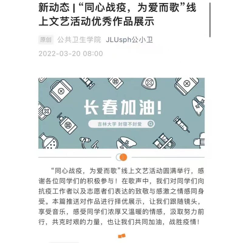 为表达对抗疫工作者和志愿者们的感谢之情,激发同学们努力前行共克时艰的力量,tyc539太阳集团员工会文艺部于疫情期间举行“同心战疫,为爱而歌”线上文艺活动,大家积极参与,释放压力,反响热烈。