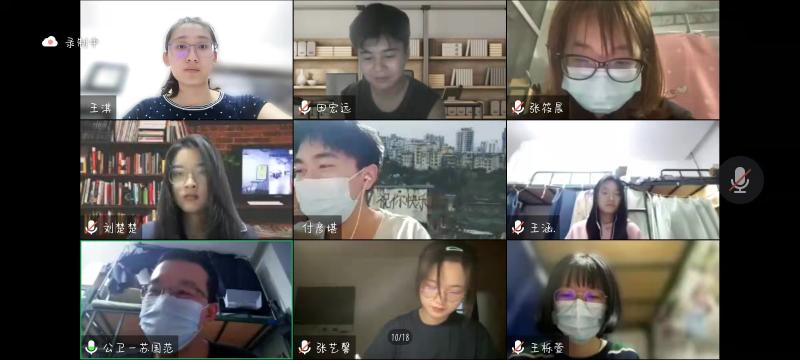 第二环节,由本科生第一党支部书记冷贺璇向全体本科生党员发起倡议。希望同学们要提高政治站位,坚定必胜信心,敢于冲锋在前,勇挑责任重担,践行初心使命,凝聚磅礴伟力。紧接着,本科生第二党支部书记苏国范、第三党支部书记刘心怡进行交流发言,他们对各位员工党员在疫情大难到来时表现出的担当精神和无私奉献感到欣慰,更希望各位同学能够在疫情攻坚战中继续坚持,毫不松懈。党委副书记刘金超书记作出总结发言,他提醒同学们,面对国家有需要、社会有需要的时候,党员理应冲在最前方,但也一定要在保护好自己的前提下展开工作。要明确政治站位,勇挑重担,不忘初心使命。