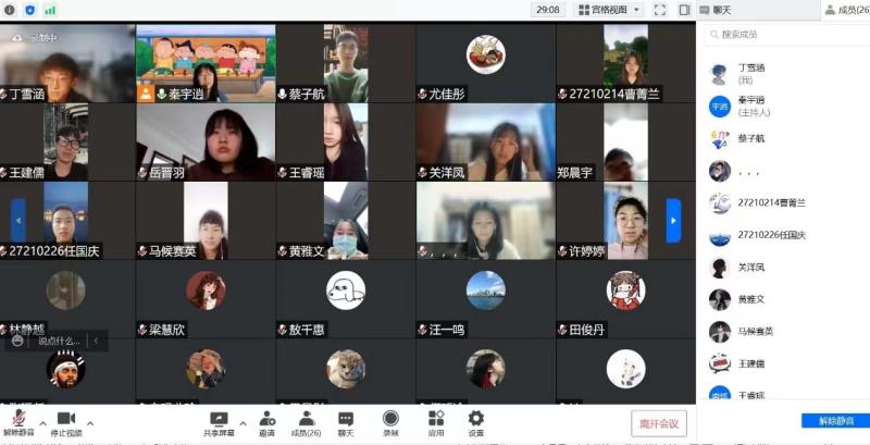 此次活动以团支部为单位进行,团支书围绕长春抗击疫情的实况,首先回顾疫情的发展,简要介绍政府在疫情中的各项决策,并对在疫情中带给我们温暖的人和故事进行详细的讲解。