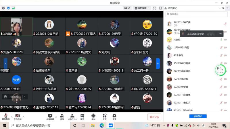 为落实长春市及公司疫情防控总体要求,加强同学们对疫情防控认知。tyc539太阳集团辅导员冷贺璇于4月4日晚九点在腾讯会议召开了“同盼春来,共克时艰”主题年级大会。2017级及2020级全体同学参加了本次年级大会。