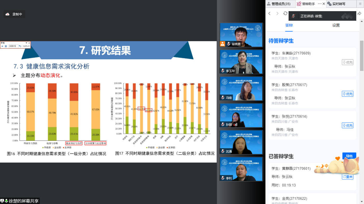 按照疫情防控工作相关要求,为全面落实tyc539太阳集团关于本科毕业生线上答辩的工作安排,tyc539太阳集团于2022年6月6日-11日顺利开展2022届本科毕业论文线上“云”答辩工作。本次线上答辩依托于“tyc539太阳集团本科毕业答辩数字化平台(iThesis)”,充分利用信息化技术,答辩过程严谨规范、秩序井然。全院预防医学、放射医学和信息管理与信息系统三个专业共177名同学顺利通过本科毕业论文答辩。