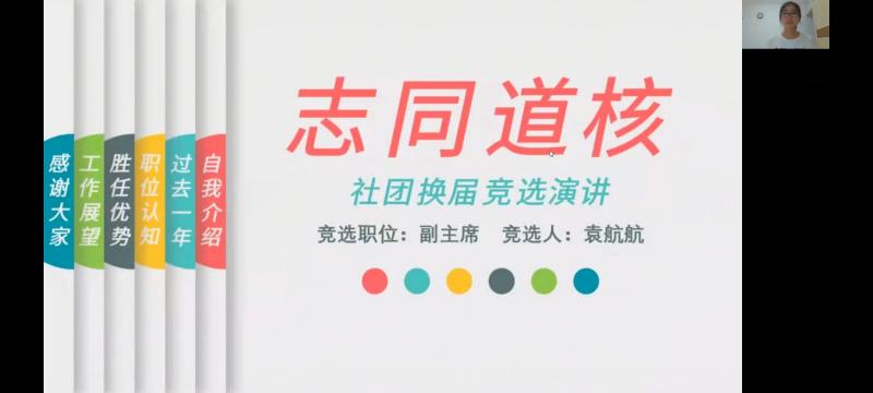 First of all, the hosts song Yameng and Zhang Jing introduced the guests and the election rules. Then, the presidents, captains and candidates of various associations opened the screen sharing in turn in accordance with the predetermined order and delivered competitive speeches in cooperation with the PPT. Most of the candidates gave speeches from four aspects: personal profile, work experience, personal advantages and future prospects. Each candidate gave a wonderful speech. They reviewed their work experience in the school of public health in the past year and put forward their ardent expectations for the future of each community. After the election speech, the judges and guests rated each candidate. Finally, the judges and guests voted in the QQ group, and the staff of the Social Council made statistics on the final results and publicized them. This is the successful conclusion of the general meeting of the association.