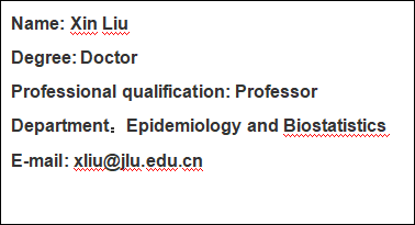 2006.09-2015.09 School of Public Health, Jilin University, Associate Professor