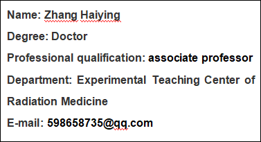 l Associate professor, Jilin University, Experimental Teaching Center of Radiation Medicine, 2004-present