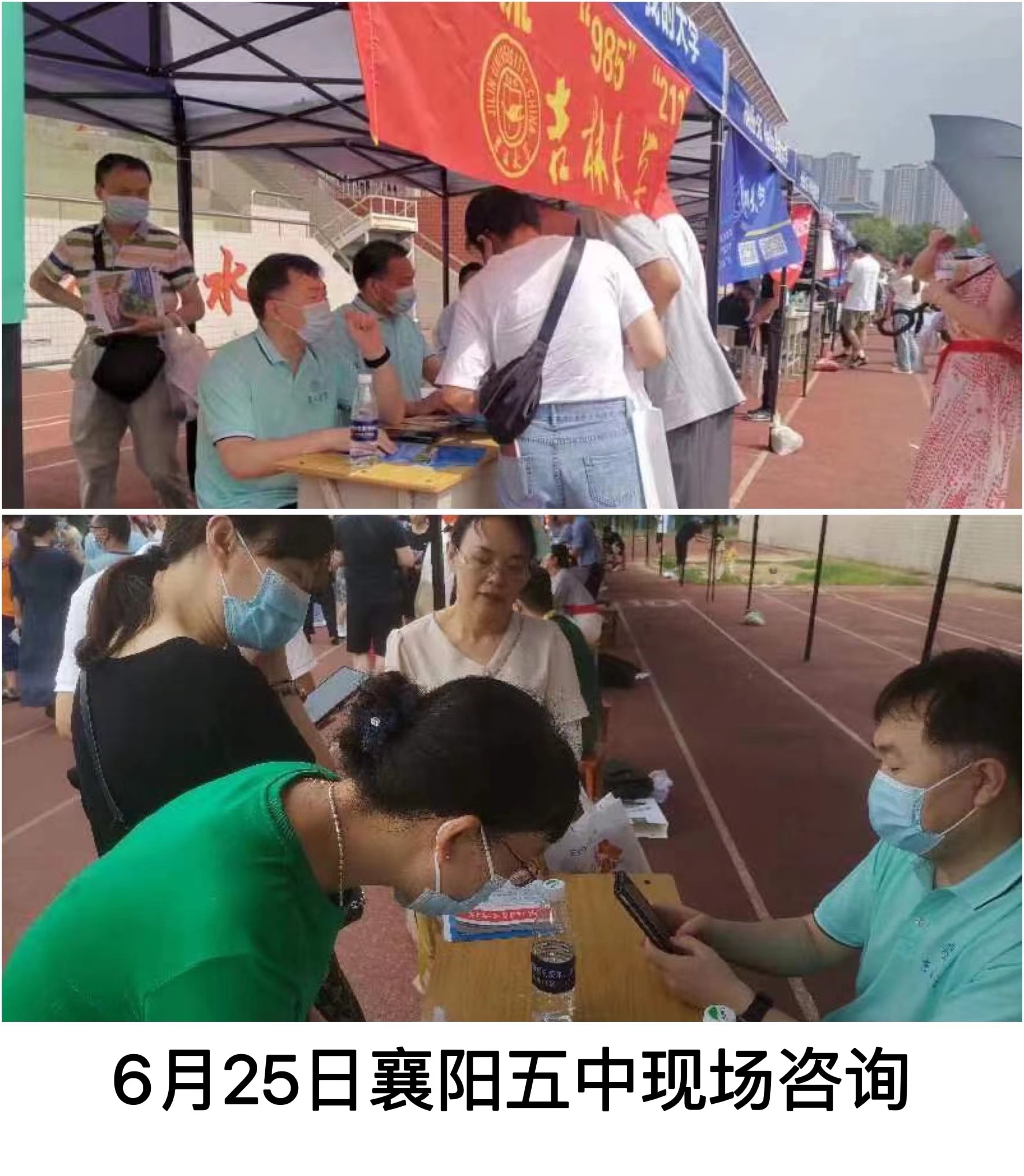 After online enrollment promotion through 360 Education Online, Gaozhaotong, Gaokaobang and other platforms, in order to better provide high-quality and valuable guidance for candidates to apply for the examination, the School of Public Health of Jilin University rushed to Hubei Province to carry out on-site enrollment consultation activities and the awarding of excellent student base during the online enrollment period after the release of the results of the college entrance examination in Hubei Province from June 25 to June 30, and successively in Xiangyang No. 4 Middle School, Xiangyang No. 5 Middle School, Hubei Province Several schools, including Xiangyang No.1 Middle School, Xiangyang No.3 Middle School, Daye No.1 Middle School, Suizhou No.1 Middle School, Hong'an No.1 Middle School, Macheng No.1 Middle School, Lichuan No.1 Middle School, Enshi High School and Badong No.1 Middle School, have held high-quality enrollment consultation and enrollment guidance. The college of public health in Hubei was divided into two publicity groups at the same time, led by Professor Kou Changgui, the vice president of teaching of the college of public health, Mr. Liu Jinchao, the vice secretary and vice president of the party committee of the college of public health, and the enrollment publicity team with many years of experience in enrollment publicity, such as Mr. Gan Zhenwei, Mr. Liu Guoliang, Mr. Liu Huafeng, and Mr. Li Zhuolin.
