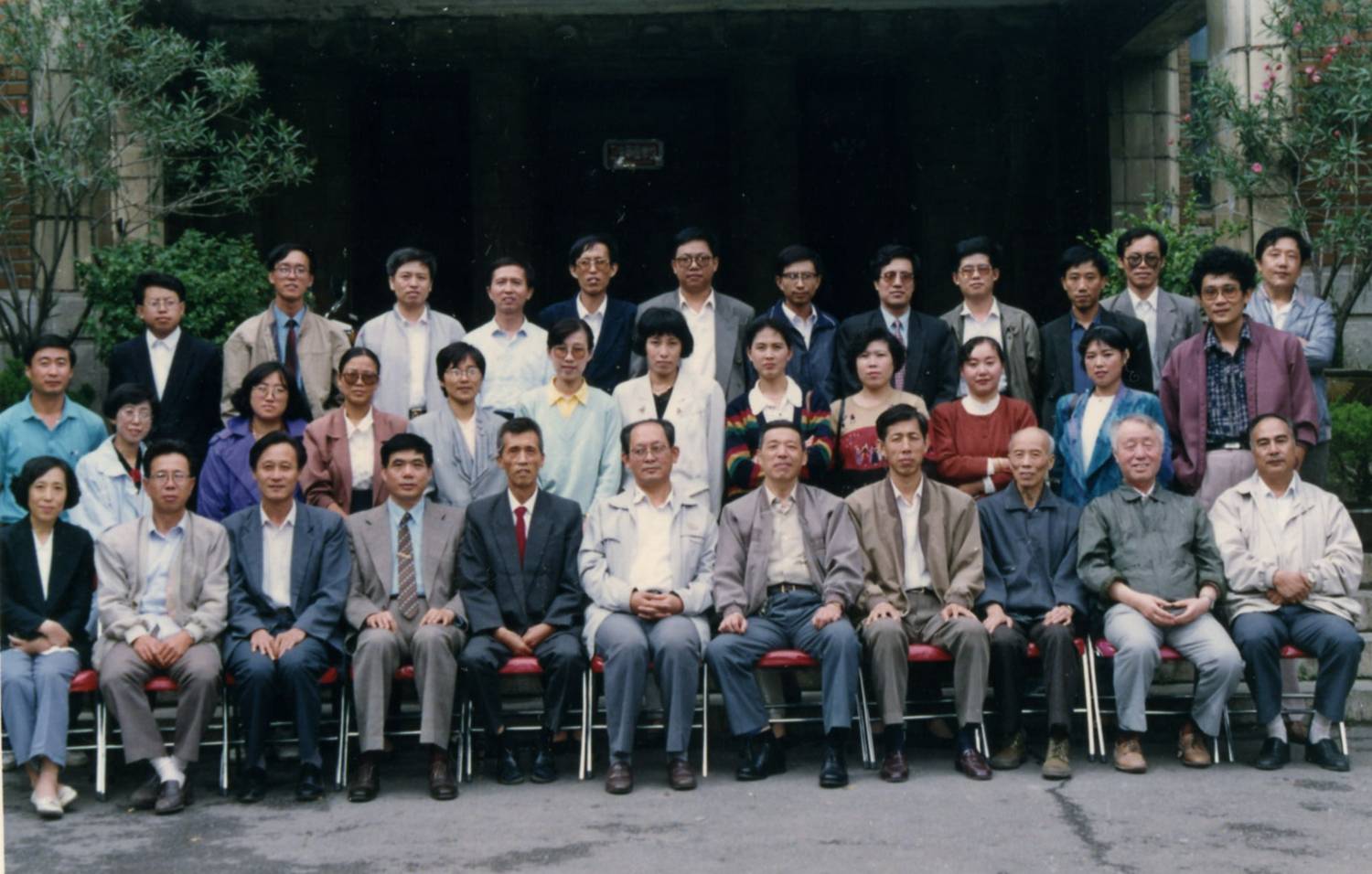 员工在教学楼门前合影留念 |